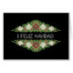 Une carte de Noël chic et florale avec des Roses de Noël rouges et blancs, Holly et Ivy sur un arrière - plan noir et la langue espagnole Salutation 'i Feliz Navidad' en lettres modernes et élégantes, en blanc. D'un dessin peint à la main par Judy Adamson. N'hésitez pas à ajouter votre propre texte intérieur.