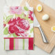 Cette serviette de cuisine Rose et Stripes présente des roses roses assorties à rayures pour un look Chic ou Cottage Shabby.