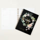 Pretty monogram 2023 planner, featuring a beautiful white script name with a complimenting gold initial that is framed by a delicate watercolor floral rose garland on a black background. Designed by Thisisnotme©