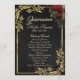 This elegant floral and gold leaves Quinceanera program is ready to personalize with your order of events, special thanks and any other information you wish to add. The design features bouquet of red roses on an elegant black background embellished with a frame of gold leaves. Designed to coordinate with the "Floral & Gold Leaves - Black & Pearl" Quinceanera Collection. To change details, click «Personalize». To move the text or change the text size, font, or color click «Click to customize further»