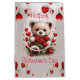 Roses & Hearts Cute Teddy Bear Valentine's Day Medium Gift Bag
