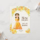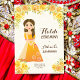 Fleurs de roses jaunes avec jolie fille indienne Haldi Invitation avec Ganesha.