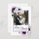 Ces belles cartes de remerciement boho chic et rustique mariage sont entourées de votre photo dans un décor de prune violet et lavande peint à la main, avec des feuilles d'eucalyptus et de la verdure. La légende dit : Amour et Merci, avec vos noms ci-dessous. Le dos a de la place pour une courte note de remerciement personnalisée ainsi qu'un code QR pointant vos invités vers votre galerie photo en ligne où ils peuvent voir et/ou télécharger des photos de l'événement. Simple et élégant, ce carte de remerciements est le moyen parfait de faire connaître à vos amis et à votre famille combien vous appréciez leur amour et leur soutien.