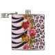 Roses on Leopard Print and Zebra Stripes on Pink Hip Flask