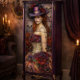 This design transforms furniture into dramatic focal points worthy of a Parisian opera house. The rich colour palette and theatrical composition make each piece a stunning statement, perfect for adding romantic drama to dressing rooms, powder rooms, or sophisticated bedrooms. The artwork's attention to historical detail and luxurious elements elevates ordinary furniture into extraordinary conversation pieces that capture the essence of Victorian haute couture while maintaining timeless appeal.