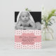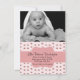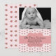 Faire-part de naissance de bébé photo sur mesure et élégant, réalisé dans un motif rayé rose et blanc, avec de jolies roses roses. Une photo personnalisée pour bébé décore le dessus, de la carte plate, avec une zone de texte de bande décorative rose, à travers le motif floral. Le texte noir personnalisé prêt à être personnalisé, avec les informations de naissance de votre bébé. Bonne façon d'annoncer l'arrivée de votre bébé à vos amis et à votre famille.