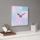 Une jolie horloge murale féminine, avec un motif Faux Patchwork de roses roses vives sur un arrière - plan bleu ciel, parsemé de petits papillons blancs, en équipe avec Check Ginghams, Pois et Motifs rayés correspondants. Une partie de la collection Posh & Painterly 'Summer Days'. (Ce motif peut facilement être ajusté pour s'adapter à n'importe laquelle des horloges.)
