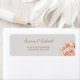 Cette étiquette d'adresse de retour mariage comporte deux fleurs roses avec une police de calligraphie élégante en or. Personnalisez-le avec vos noms et votre adresse. La couleur arrière - plan a été définie sur gris mais n'hésitez pas à sélectionner une nouvelle couleur de remplissage pour compléter votre thème mariage ou votre couleur d'enveloppe.