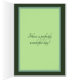 Carte de voeux 5" x 7" avec une image vintage de trois roses rouges sur vert citron. Bordure verte poussiéreuse et verte forêt. Le sentiment extérieur dit : "Bonne chérie d'anniversaire !" L'intérieur est vert forêt avec une image à droite d'un rectangle vert citron assorti avec une bordure verte poussiéreuse et verte forêt et un sentiment personnalisable qui dit : "Bonne journée merveilleuse !" Voir étiquette et autocollant correspondant. Voir toute la collection de cartes de voeux d'anniversaire dans les INVITATIONS | Section Invitations et Cartes.