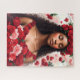 Ce puzzle floral présente une peinture à l'huile peinte en portrait d'une belle femme à la peau brune, aux cheveux longs et bouclés ornés et entourés de roses rouges. Les yeux de la beauté mélanée sont fermés dans une expression sereine. Une oeuvre d'art très féminine, éthérée et fleurie pour la Saint-Valentin, les amateurs de rose rouge ou toute occasion !