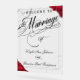 Red Roses Mariage Bienvenue Le signe acrylique est la plus récente tendance dans la signalisation mariage! Bienvenue à vos invités dans le style avec cet élégant panneau d'accueil en acrylique clair mariage avec une rose rouge romantique. L'arrière - plan acrylique transparent associé à une calligraphie audacieuse crée un look moderne mais intemporel qui convient à n'importe quel thème mariage. Personnalisez-le avec vos noms et votre date de mariage pour en faire un souvenir unique. Parfait pour l'exposition à l'entrée ou à la réception de votre cérémonie, ce panneau de mariage personnalisé fait une impression durable dès l'arrivée des invités. Durable, chic et facile à présenter, il allie harmonieusement décoration mariage moderne et romantisme classique. Correspond parfaitement à la collection de Faire-part de mariage Red Roses.