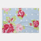 Cette serviette de cuisine Rose On Blue présente des roses roses sur un pois bleu et blanc arrière - plan pour un look Chic Shabby.