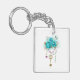 Clé d'or antique aux roses turquoise tendance décorée de feuilles d'or blanc et de perles rose et bleu. Couleur tendance. Rose turquoise. Blanc doré. Tiffany bleu.