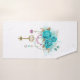 Clé d'or antique aux roses turquoise tendance décorée de feuilles d'or blanc et de perles rose et bleu. Couleur tendance. Rose turquoise. Blanc doré. Tiffany bleu.