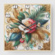 Roses With Gold Leaves on Marble Square Wall Clock