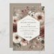 Experience a timeless romance with this elegant botanical design. A sophisticated color palette of dusty rosewood, deep burgundy, and soft cream creates a moody and enchanting atmosphere. The artwork features a lush arrangement of painterly anemones, dahlias, and delicate foliage for a truly unforgettable union.