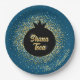 Rosh Hashanah Blue Black-Gold Sparkly Pomegranate Paper Plate