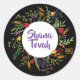 Rosh Hashanah Colourful Floral Wreath Sticker with pomegranates and honey against a dramatic black background. Shanah Tovah in ENGLISH. Jewish New Year wishes. Dress up your gift cards or gift bags & Set a festive holiday tone. A beautiful way to wish friends and family a Happy and Sweet Jewish New Year .If you would like to see a custom variation of this design please email bestdressedbread@gmail.com. We love to collaborate
