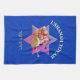 Stylish Israeli blue ROSH HASHANAH Jewish New Year kitchen towel, showing a Star of David with a bowl of apples and a dish of honey. Above is the greeting L'SHANAH TOVAH, written in white and faux gold typography, followed by ROSH HASHANAH in Hebrew text at the bottom. TEXT IS CUSTOMIZABLE, so you can create your own preferred text and spellings (eg. Shana Tova), with the easy-to-use templates. There are three Star of Davids in the centre. Matching kitchenware, party supplies and gifts are available. Choose from a wide selection of stylish, customizable Jewish celebration cards and gifts designed by Berean Designs.