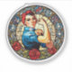 The vintage retro aesthetic, reminiscent of early 20th-century design, adds a nostalgic charm that connects Rosie's story to the broader tapestry of women's empowerment throughout history. Incorporating Mucha-inspired flourishes, such as flowing lines, floral patterns, and intricate details, transforms Rosie into a modern muse who bridges the past and the present. Adding the stained glass effect elevates the imagery further, making it feel like a sacred, luminous tribute to feminism’s enduring legacy.