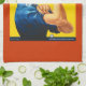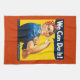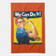 Lacking motivation to do the dishes? In need of a little girl power? Try this retro look Rosie the Riveter themed kitchen towel for inspiration. The design is an illustration of the iconic Rosie the Riveter, star of a vintage American WW2 poster, flexing her mighty muscles saying "We Can Do It!" to her sister Americans, as she urges women to work in factories to help the war effort. The famous poster by artist J Howard Miller shows Rosie dressed in her trademark blue overalls and red and white polkadot Forties' headscarf. You can change the colour of the red background to suit by using the customize button.