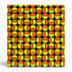 An attractive geometric design made up of divided circles with two toned halves each motif is rotated 90 degrees to the previous one creating an interesting and dynamic modern pattern.
