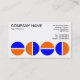 A business card template with an attractive rotating geometric circles motif where each circle is rotated 90 degrees to the one previous to it. Company name, Business type/quote, along with address and telephone details on the front, with name, title, email and web details on the reverse. However the design can be customized in a variety of ways.