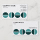 A business card template with an attractive rotating geometric circles motif where each circle is rotated 90 degrees to the one previous to it. Company name, Business type/quote, along with address and telephone details on the front, with name, title, email and web details on the reverse. However the design can be customized in a variety of ways.