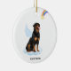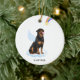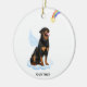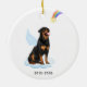 Celebrate your best friend with a custom Rottweiler angel memorial ornament. This Rottweiler christmas memorial ornament features a watercolor Rottweiler dog with angel wings and a rainbow and shooting gold star. Personalize with name front, dates back . This Rottweiler memorial ornament is a perfect dog remembrance keepsake or pet christmas memorial keepsake. COPYRIGHT © 2022 Judy Burrows, Black Dog Art - All Rights Reserved. Rottweiler Angel Personalized Pet Dog Memorial Ceramic Ornament