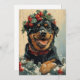 Wishing you a festive season filled with joy and warmth! This Christmas card features a lovable Rottweiler, donning a Santa hat with a twinkle in its eye. The playful canine spirit brings a touch of holiday cheer, promising a season of merriment and tail-wagging happiness. Share in the joy as this festive friend spreads Christmas magic, making your celebrations extra special.