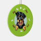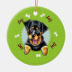 Cute holiday ornament depicting a Rottweiler peeking out of a festive wreath adorned with dog bones and bows. Hand drawn art. Click the orange "customize it!" button to add text to the back, such as a pet's name, to create a truly one-of-a-kind-gift!