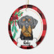 Rottweiler ornament with red buffalo background and Christmas garland and bow - Art was hand painted by me and made available as this adorable ornament! Add any text (suggested: "I ❤️ my rottie" or your sweetie's name)