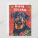 Rottweiler Birthday greeting. A smiling Rottweiler wishes Happy Birthday. Perfect for All Rottweiler lover and Rottweiler owner.