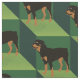 This is a fun pattern with a cute cartoon Rottweiler on various shades of green. The dark and light patterns make an optical illusion of depth.