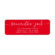 4 LIGNES Fêtes de Noël Mariage moderne élégant Retourner Adresse Label 4 LIGNES Mariage moderne élégant Script Retourner Adresse simple étiquette en oculaire rouge et blanc typo avec couple nom de famille en calligraphie manuscrite et adresse de retour en standard classique sans serif police. Idéal pour les invitations à un mariage ou à un rspv.