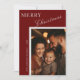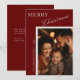 Rouge Avec Carte photo De Famille De Script Argent. Célébrez la saison avec cet élégant rouge avec une carte de Noël en argent, avec une photo de famille sur la droite. Le design est de style portrait et comprend la calligraphie script, avec une bordure rouge festive sur deux côtés de l'image avec le type rouge correspondant pour une touche joyeuse. Customisez la carte avec votre propre photo, les noms de famille, un message sincère, et l'année, ce qui en fait un accueil vraiment personnel de vacances.