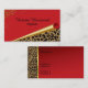 Carte de visite élégant fait en rouge, avec des graphiques d'un coin inférieur courbé goldtone, sur l'avant, avec un motif repéré brun et noir de jaguar, au-dessous de lui. Les flourishes goldtone élégants décorent l'avant de la carte. Le texte noir, sur l'avant et le dos, est prêt à personnaliser à vos besoins. Beau tenez la carte qui emballe une grande impression.