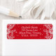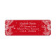 Étiquettes rouges et blanches d'adresse de retour de Noël conçues sur un arrière - plan rouge, avec peignes de pin blanc et neige. Pour personnaliser avec votre adresse de retour, insérez simplement votre texte dans notre modèle facile, en remplaçant l'exemple de texte. Bon appétit !