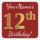 Ce simple autocollant d’anniversaire comporte un message comme "12e anniversaire de YourName!", avec le "12e" ayant une apparence fausse/imitation couleur d’inspiration or, sur un arrière - plan de couleur rouge. Le nom peut être personnalisé. Des autocollants comme ceux-ci pourraient peut-être être un cadeau pour quelqu'un qui célèbre son douzième anniversaire, ou ils pourraient peut-être être utilisés comme décorations lors d'une fête d'anniversaire. [~Z0000245]