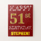 Cette conception amusante et simple de puzzle d'anniversaire comprend le message "HAPPY 51st BANTHDAY", avec le "51st" ayant une apparence de couleur fausse/imitation or. Il porte également un nom customisé et un arrière - plan de couleur rouge. Ce pourrait être une façon amusante et spéciale de délivrer un message d'anniversaire personnalisé à quelqu'un qui célèbre son cinquante et unième anniversaire. [~Z0000200]
