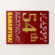 Cette conception amusante et simple de puzzle d'anniversaire comprend le message "HAPPY 54th BIRTHDAY", avec le "54th" ayant une apparence de couleur fausse/imitation or. Il comporte également un nom personnalisé et un arrière - plan de couleur rouge. Ce pourrait être une façon amusante et spéciale de délivrer un message d'anniversaire personnalisé à quelqu'un qui célèbre son cinquante-quatrième anniversaire. [~Z0000200]