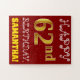 Cette conception amusante et simple de puzzle d'anniversaire comprend le message "HAPPY 62nd BIRTHDAY", avec le "62nd" ayant une apparence de couleur fausse/imitation or. Il porte également un nom personnalisé et un arrière - plan de couleur rouge. Ce pourrait être une façon amusante et spéciale de délivrer un message d'anniversaire personnalisé à quelqu'un qui célèbre son soixante-deuxième anniversaire. [~Z0000200]