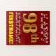 Cette conception amusante et simple de puzzle d'anniversaire comprend le message "HAPPY 98th BIRTHDAY", avec le "98th" ayant une apparence de couleur fausse/imitation or. Il comporte également un nom personnalisé et un arrière - plan de couleur rouge. Ce pourrait être une façon amusante et spéciale de délivrer un message d'anniversaire personnalisé à quelqu'un qui célèbre son quatre-vingt-dix-huitième anniversaire. [~Z0000200]