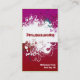 Favorisez vos affaires de maquilleur avec ce carte de visite unique à la mode grunge rouge, rose, turquoise audacieux et lumineux de bleu, et blanc floral et de remous de vigne de peinture d'éclaboussure de maquilleur. Ce carte de visite grunge audacieux est également un grand match pour des techniciens d'ongle, des salons de coiffure, la mode, des magasins de bijoux, des chanteurs, des bandes, des danseurs, des studios de danse, des artistes exécutants, des producteurs record, des planificateurs de partie, des organisateurs, des planificateurs de garde-robe, des magazines de style, des directeurs, des magasins de détail, des concepteurs de sac à main, des artistes de tatouage, des perforateurs, et plus. Conceptions de ©2011 Pam.