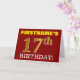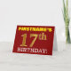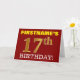 Ce design de carte de voeux d’anniversaire comporte un message comme "FIRSTNAME’S 17th BIRTHDAY!", le "17th" ayant une apparence de couleur fausse/imitation or. Le nom du destinataire sur le devant peut être customisé, et l’arrière - plan avant est de couleur rouge. Il comporte également un message de voeux d'anniversaire personnalisable à l'intérieur. Une carte de voeux comme celle-ci pourrait peut-être être remise à quelqu'un pour célébrer son dix-septième anniversaire. [~Z0000184]