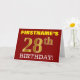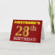 Ce design de carte de voeux d’anniversaire comporte un message comme "FIRSTNAME’S 28th BIRTHDAY!", le "28th" ayant une apparence de couleur fausse/imitation or. Le nom du destinataire sur le devant peut être personnalisé, et l’arrière - plan avant est de couleur rouge. Il comporte également un message de voeux d'anniversaire personnalisable à l'intérieur. Une carte de voeux comme celle-ci pourrait peut-être être remise à quelqu'un pour célébrer son vingt-huitième anniversaire. [~Z0000184]