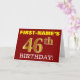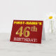 Ce design de carte de voeux d’anniversaire comporte un message comme "FIRST-NAME’S 46th BIRTHDAY!", avec le "46th" ayant une apparence de couleur fausse/imitation or. Le nom du destinataire sur le devant peut être personnalisé, et l’arrière - plan avant est de couleur rouge. Il comporte également un message d'anniversaire personnalisé à l'intérieur. Une carte de voeux comme celle-ci pourrait peut-être être remise à quelqu'un pour célébrer son quarante-sixième anniversaire. [~Z0000184]