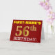 Ce design de carte de voeux d’anniversaire comporte un message comme "FIRST-NAME’S 56th BIRTHDAY!", avec le "56th" ayant une apparence de couleur fausse/imitation or. Le nom du destinataire sur le devant peut être customisé, et l’arrière - plan avant est de couleur rouge. Il comporte également un message d'anniversaire personnalisé à l'intérieur. Une carte de voeux comme celle-ci pourrait peut-être être remise à quelqu'un pour célébrer son cinquante-sixième anniversaire. [~Z0000184]