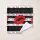 Baiser rouge rouge rouge rouge à lèvres imprimé marque de toilette rayé noir et blanc. Les serviettes comportent les mots baisers sur un motif arrière - plan rayé noir et blanc ! Un rideau de douche et un matelas de bain sont également disponibles dans notre boutique! Super idée cadeau maison aussi!