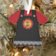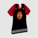 Robe rouge avec une pinafort gris fusain mignon, boutons de flocon de neige et garniture en dentelle, dispose d'un grand design de flocon de neige en face, montrant le monogramme et le nom de votre être aimé. Sur le dos est un petit coeur "tatouage" en blanc, avec le libellé, "Noël 20xx" en rouge. Personnalisez avec vos détails et l'année en cours, en suivant le lien "Personnalisez ce modèle".